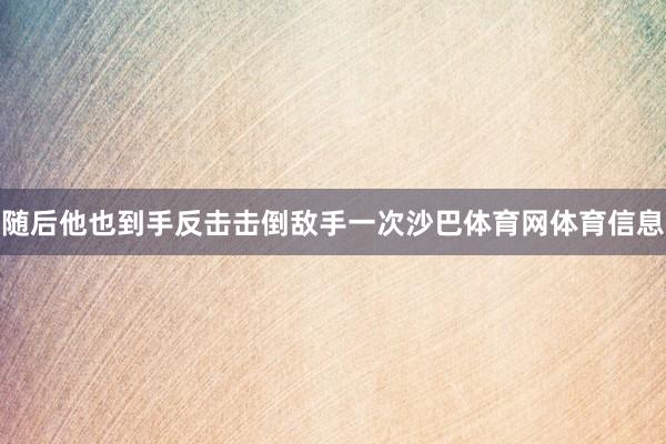 随后他也到手反击击倒敌手一次沙巴体育网体育信息