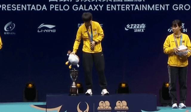 国乒男队不争脸,但中国女乒一如既往褂讪,在奏中国国歌前,孙颖莎很搞笑,手里的镇静物波仔不知说念往那处放了,看到全国杯女单冠军奖杯——哈马隆德杯莫得盖子,顺遂就把它扔到“锅里”,这个画面十分搞笑,也算是国乒决赛日唯独不详让东说念主喜笑容开的细节了吧!