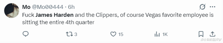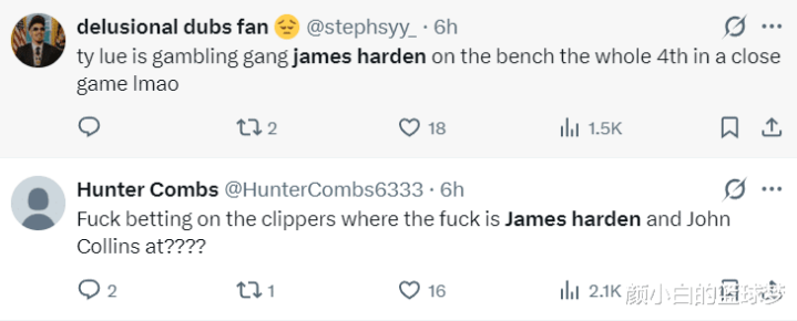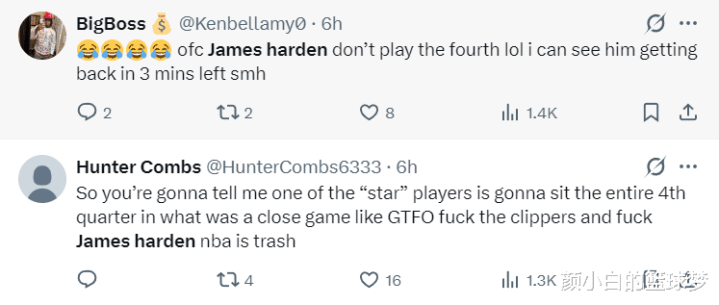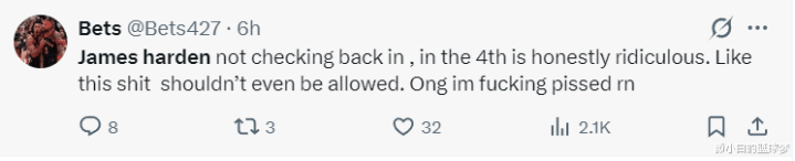 6.哈登在第四节莫得登场,这着实是太无理了,这种行为不该被允许,我真的要FXXK。