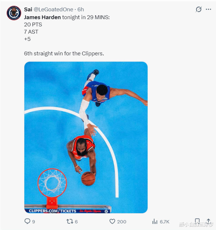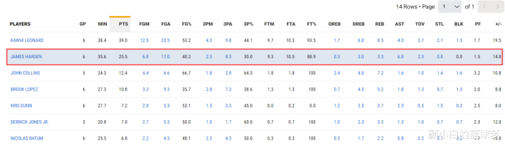哈登全场比赛28分53秒,14中5,三分6中1,罚球11中9,拿到20分7助攻3篮板1极度,掷中率35.7%,三分掷中率17.6%,真确掷中率53.1%,正负值+5。天然后果欠安但他在场对快船是正后果,可小节哈登被DNP了。