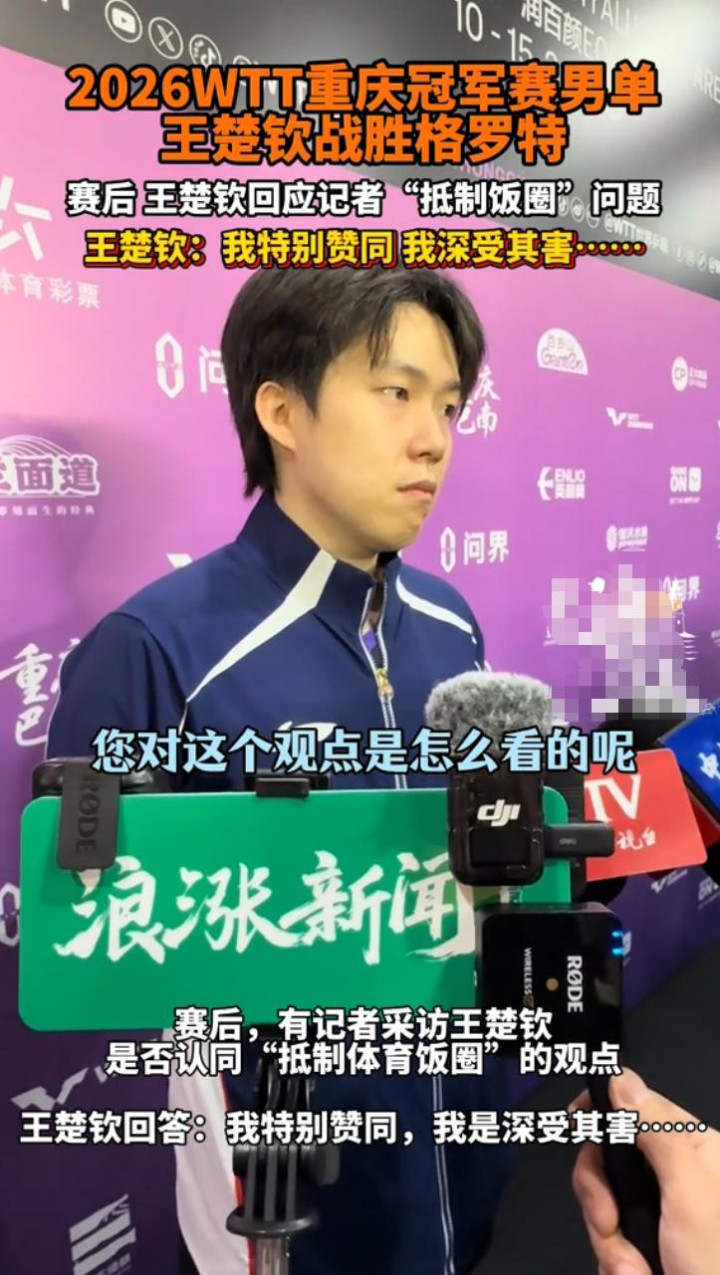 就在王励勤公开表态的第二天,WTT重庆冠军赛上,国乒主力王楚钦就碰到饭圈乱象的径直骚动。